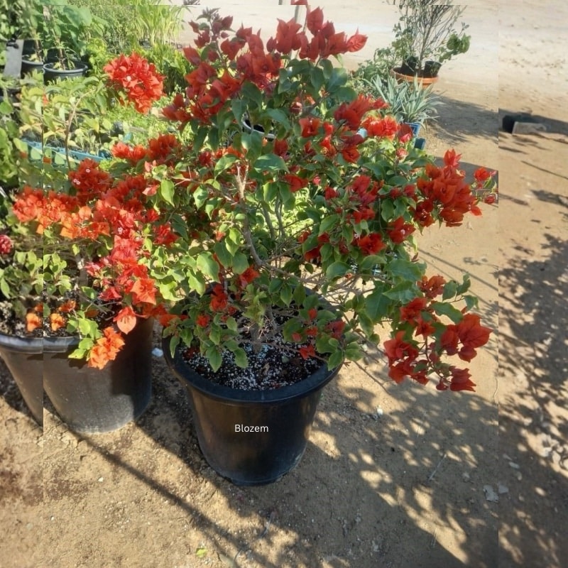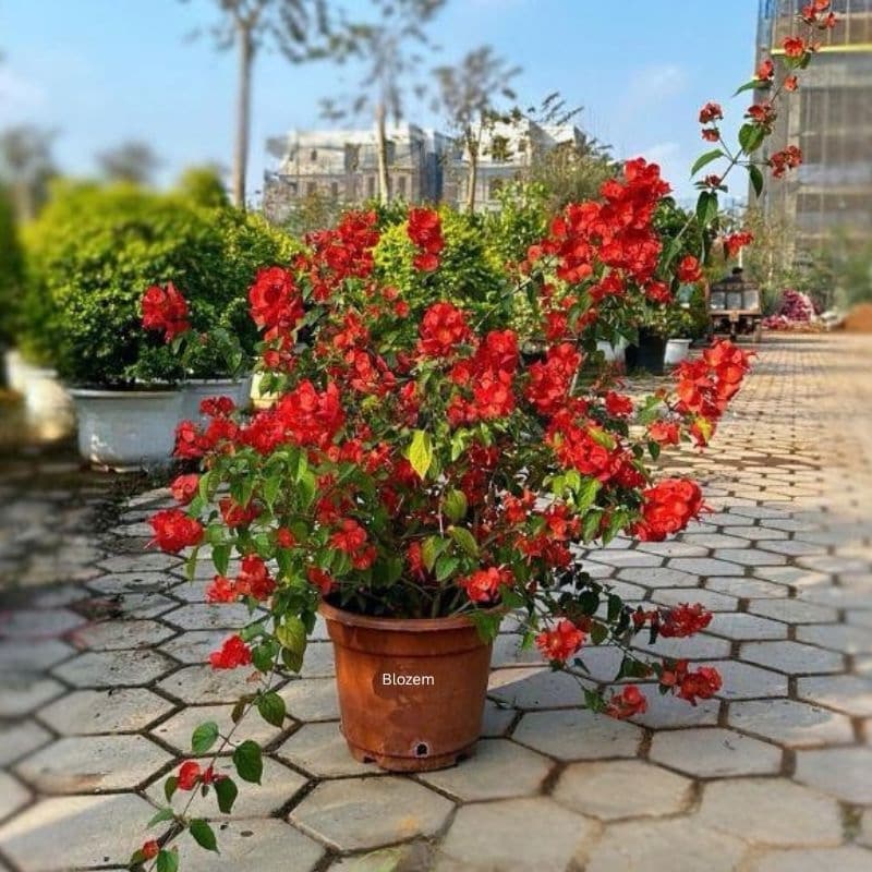 Bougainvillea ‘Tomato Red’ is a vibrant and captivating plant that instantly draws the eye with its fiery, tomato-red bracts, which seem to glow against the rich green foliage. These colorful bracts surround tiny, delicate white flowers, creating a striking contrast that enhances its ornamental appeal. The plant is a vigorous climber, capable of draping gracefully over trellises, walls, or pergolas, and can also be trained as a bushy shrub in gardens or large containers. Its lush, dense leaves complement the vivid bracts, making it a year-round source of beauty in warm climates. With its bold color, dynamic growth habit, and tropical charm, Bougainvillea ‘Tomato Red’ brings a sense of energy, warmth, and elegance to any outdoor space.