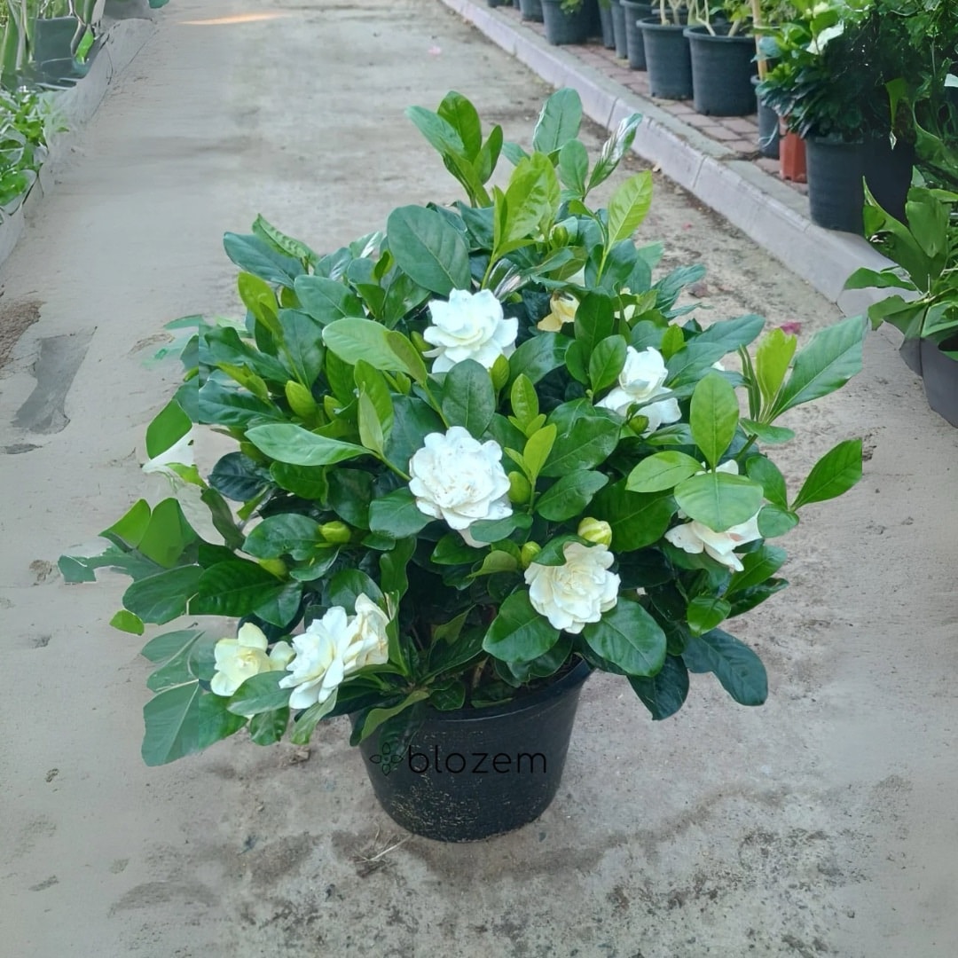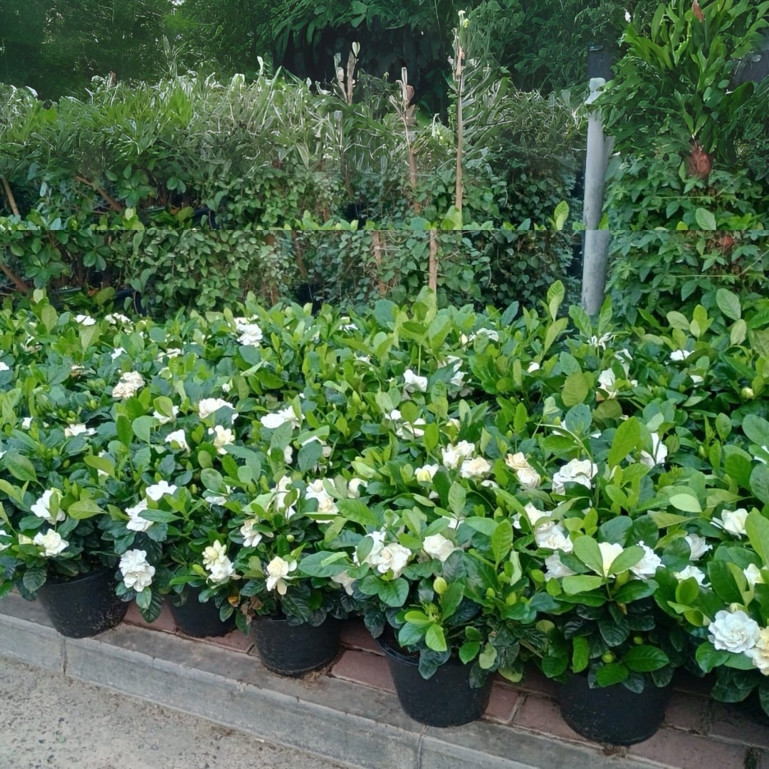 Gardenia (Cape Jasmine) is a stunning evergreen shrub known for its fragrant, creamy-white flowers and glossy dark green leaves. It thrives in warm climates and is commonly grown outdoors in gardens, patios, and landscapes.