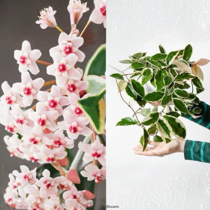 🌿Flowers: Mature plants produce dense, ball-shaped clusters (umbels) of small, waxy, star-shaped flowers that are white to pale pink with red centers. They are known for their sweet, strong fragrance, which is often more noticeable in the evening.