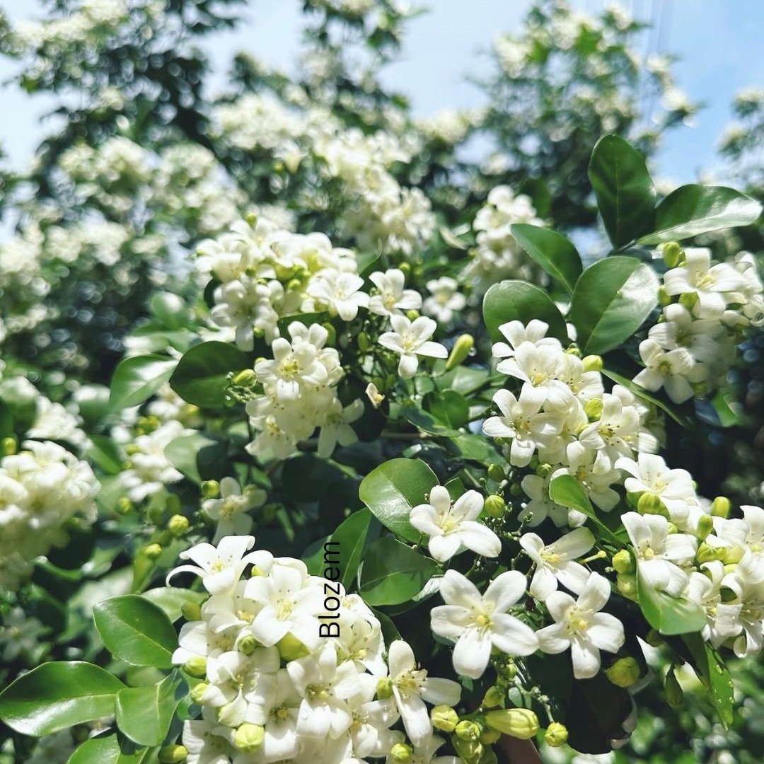 The real charm lies in its delicate, star-shaped white flowers that bloom throughout the year. These blossoms release a sweet, citrus-like fragrance, especially in the evening, filling the surroundings with a calm and refreshing scent.