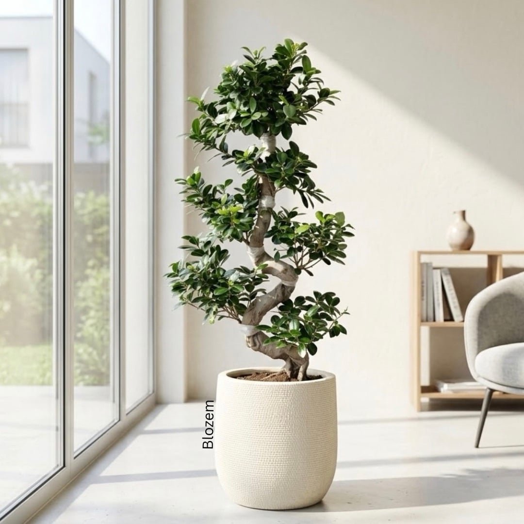 The Ficus Bonsai S Shape is a striking ornamental plant known for its gracefully curved trunk that forms an elegant “S” shape. Its glossy green leaves and compact growth create a miniature tree appearance, making it a beautiful addition to homes, offices, and living spaces. This bonsai brings a touch of nature and calmness indoors while enhancing décor with its artistic form and timeless beauty.